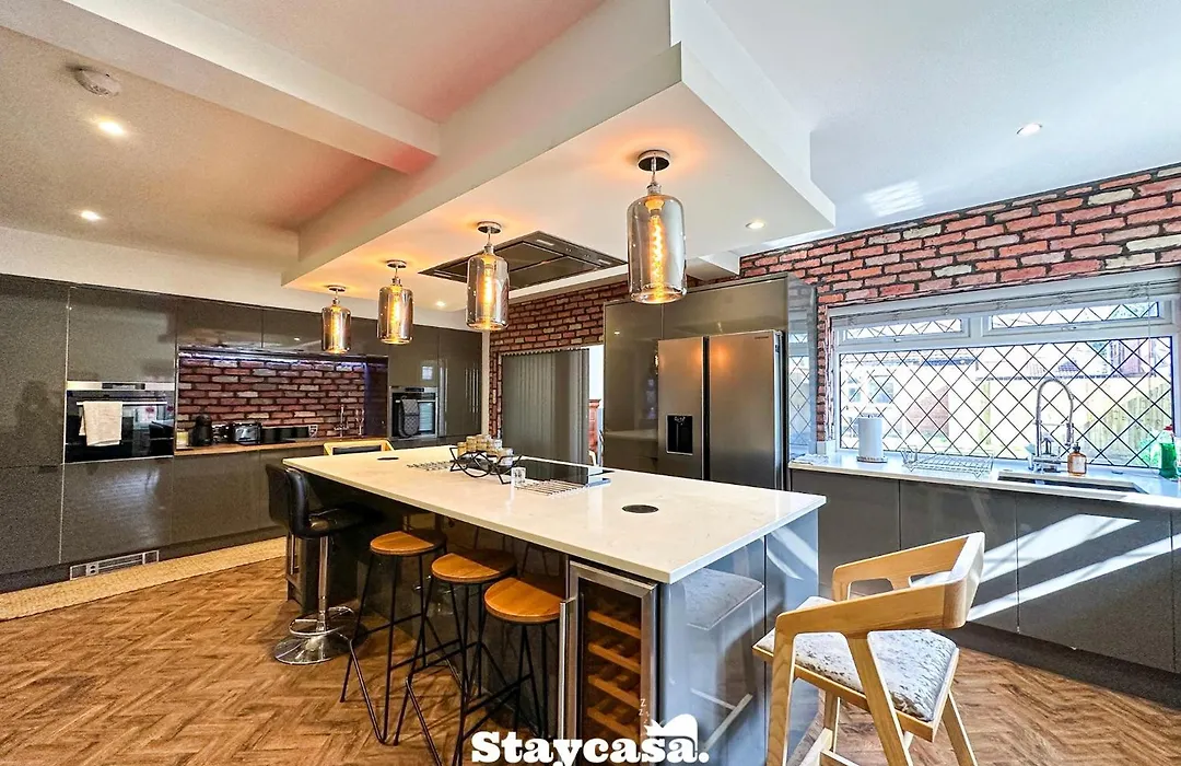 Diese Villa verfügt über einen Wasserkocher, einen Kühlschrank und einen Herd in einer voll ausgestatteten Küchenzeile. Verbringen Sie einen schönen Abend in den nächstgelegenen Restaurants Alexandros Greek Restaurant und Viet Guy, die in einer 5 Gehminuten Entfernung von der 5-Bed Manchester Home Jacuzzi Free Parking! ist. Die Bushaltestelle Palatine Road/Mill Lane befindet sich nur wenige Schritte entfernt von der Unterkunft.